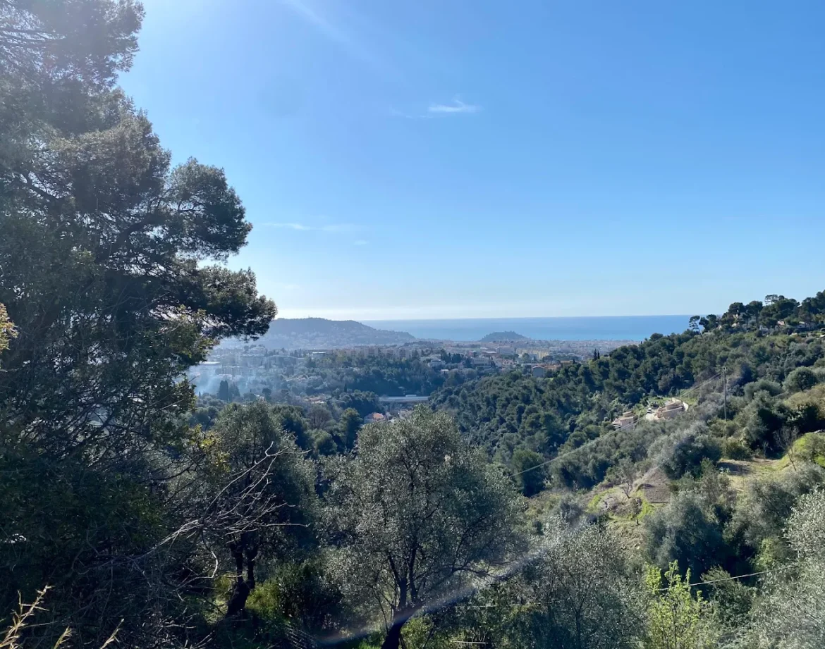 Tijdens het wandelen (of joggen) word je getrakteerd op een adembenemend uitzicht over de stad Nice, de heuvels en de azuurblauwe Middellandse Zee. Je loopt tussen de oude olijfbomen en vijgenbomen door, wat zorgt voor die typische Provençaalse geur. Aan het eind van de route kom je uit bij de waterval (de Cascade), een heerlijke plek om even op adem te komen en een foto te maken voordat je weer afdaalt naar de villa.